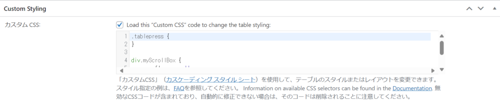 - 「プラグインのオプション」のCustom StylingのカスタムCSSにコードを入力する(後で紹介)