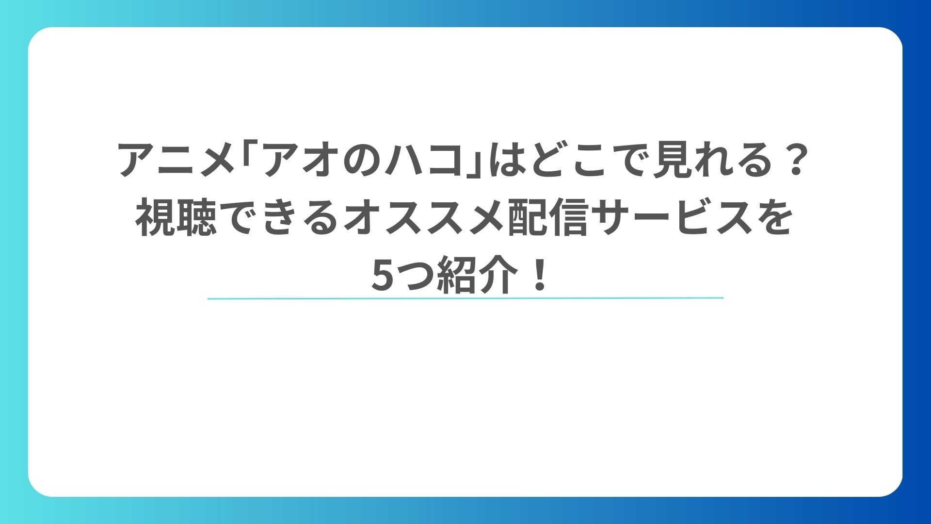 - アニメ「アオのハコ」はどこで視聴できるの?